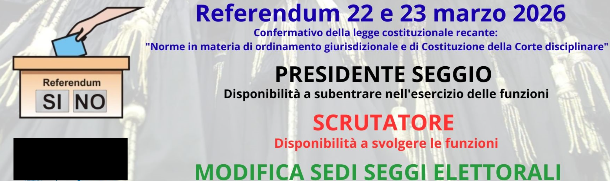 Gli iscritti nelle liste elettorali possono comunicare la propria disponibilità a sostituire i presidenti impossibilitati a svolgere l'incarico se sono in possesso del diploma di istruzione secondaria di secondo grado e se non si trovano in una delle condizioni di incompatibilità, possono comunicare la propria disponibilità a sostituire i presidenti di seggio impossibilitati a svolgere l’incarico. Alla comunicazione va allegata copia di un documento di riconoscimento.